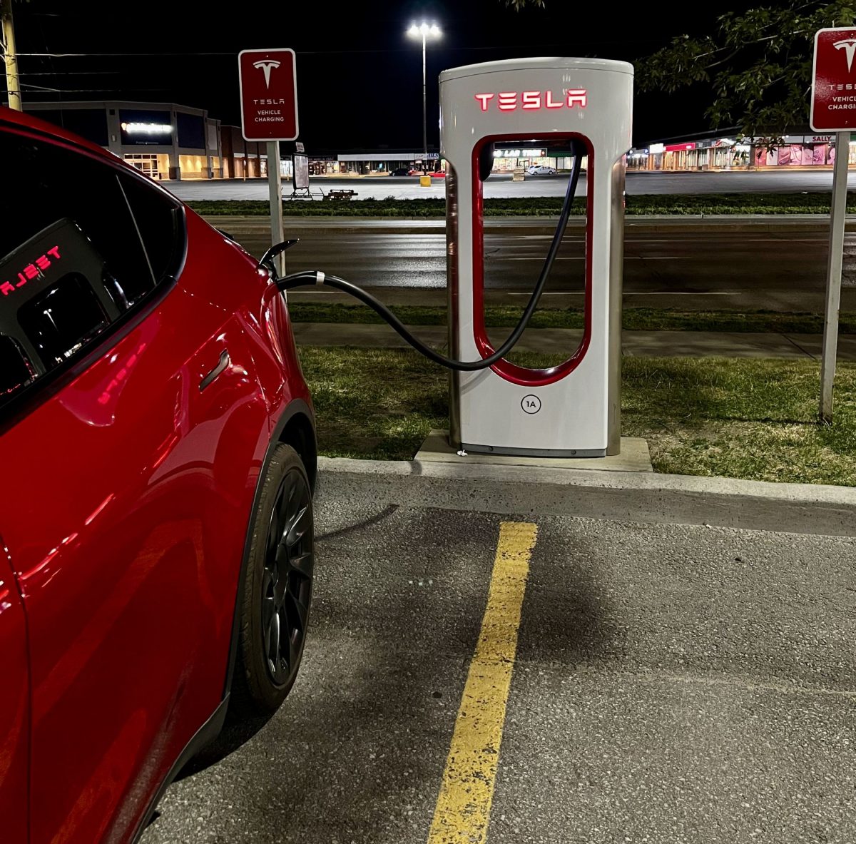 Pricing will vary by location and time of day. Expect to pay between 25 and 60 cents per kWh, and a typical charging stop on a road trip might add 25 to 50 kWh with a Long Range Model Y. So charging stops between $10-$30 are most common.
